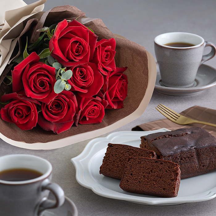 フリルブーケ ルージュ 8本&銀座千疋屋 銀座チョコパウンドケーキ